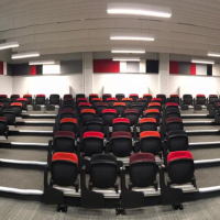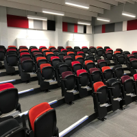 The lecture theatre on the Wiseman Site is a wonderful space for meetings, formal gatherings and corporate events. It has tiered seating and it is carpeted with capacity for 101 people seated. The lecture theatre has a large display screen and excellent sound system that can be connected for presentations.
